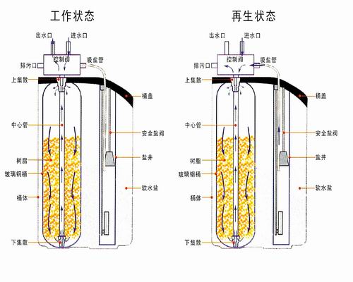 注意上布水器與控制閥、中心管,下布水器與中心管必須嚴(yán)密,防止樹(shù)脂跑出。中心管與控制閥必須嚴(yán)密不漏水,否則會(huì)出現(xiàn)竄硬水現(xiàn)象。